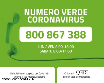 Coronavirus: dal 1° dicembre nuovamente attivo il numero verde 800 867 388