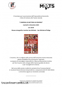 Martedì 12 dicembre ore 18.00 incontro LIMPRESA DI METTERSI IN PROPRIO presso il Museo etnografico trentino di San Michele