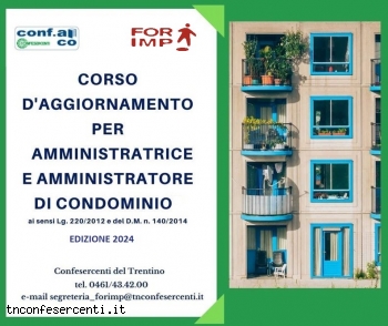 Sono aperte le iscrizioni al CORSO DAGGIORNAMENTO per AMMINISTRATRICE E AMMINISTRATORE DI CONDOMINIO
