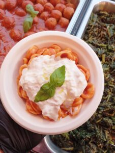 Le Orecchiette al sugo con la cacioricotta e le Orecchiette con le cime di rapa. La Focaccia e il Panzerotto. La Puccia con le Polpette e la Puccia con la Parmigiana di Melanzane. Le Bombette e le Salcicce alla brace. Il Pasticciotto e le Tette della Monaca.