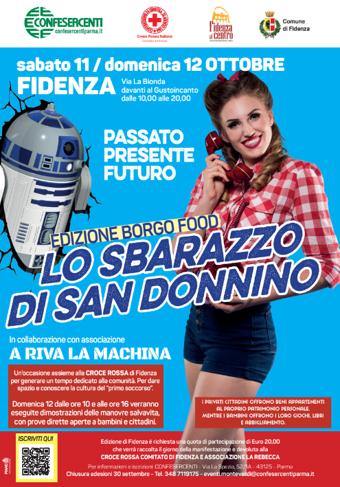 Un grande mercato del riuso e del riciclo, dove scambiare e acquistare abiti, libri, giochi e oggetti di ogni tipo. Lo Sbarazzo sarà anche un’occasione di sensibilizzazione grazie alla Croce Rossa di Fidenza, che domenica 12 dalle 10 alle 16 proporrà dimostrazioni delle manovre salvavita aperte a cittadini e bambini. Le quote di partecipazione saranno devolute in beneficenza al Comitato di Fidenza della Croce Rossa Italiana, all’Associazione Fattoria La Rebecca APS – che accoglie animali salvati dall’abbandono e dal maltrattamento – e all’Associazione Terzo Tempo. Sempre nel quartiere La Bionda, sabato 11 e domenica 12 ottobre, in via della Chiesa, A Riva la Machina organizzerà un’esposizione di macchinari, veicoli e attrezzature che hanno segnato il ‘900.