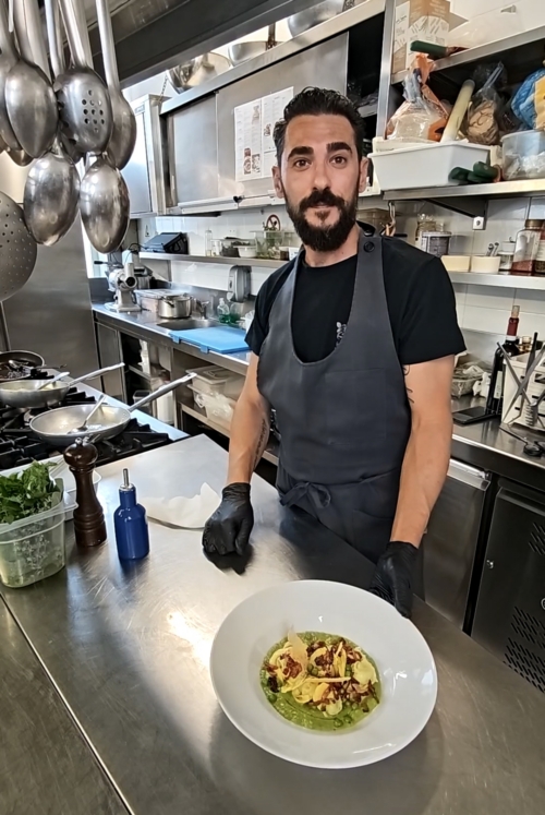 Il menù “Dal focolare alla tavola gourmet” vede protagonisti i cappelletti verdi serviti con crema di piselli e pancetta croccante, a cui si abbinano un antipasto, un secondo, un contorno ed un dolce, legati alla stagionalità ed al territorio con un gustoso fil rouge.